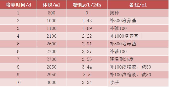 1、细胞培养过程中每天取样,观察细胞状态,检测残糖及渗透压,计数及活率,补加培养基和浓缩液,细胞增殖正常,活率正常。