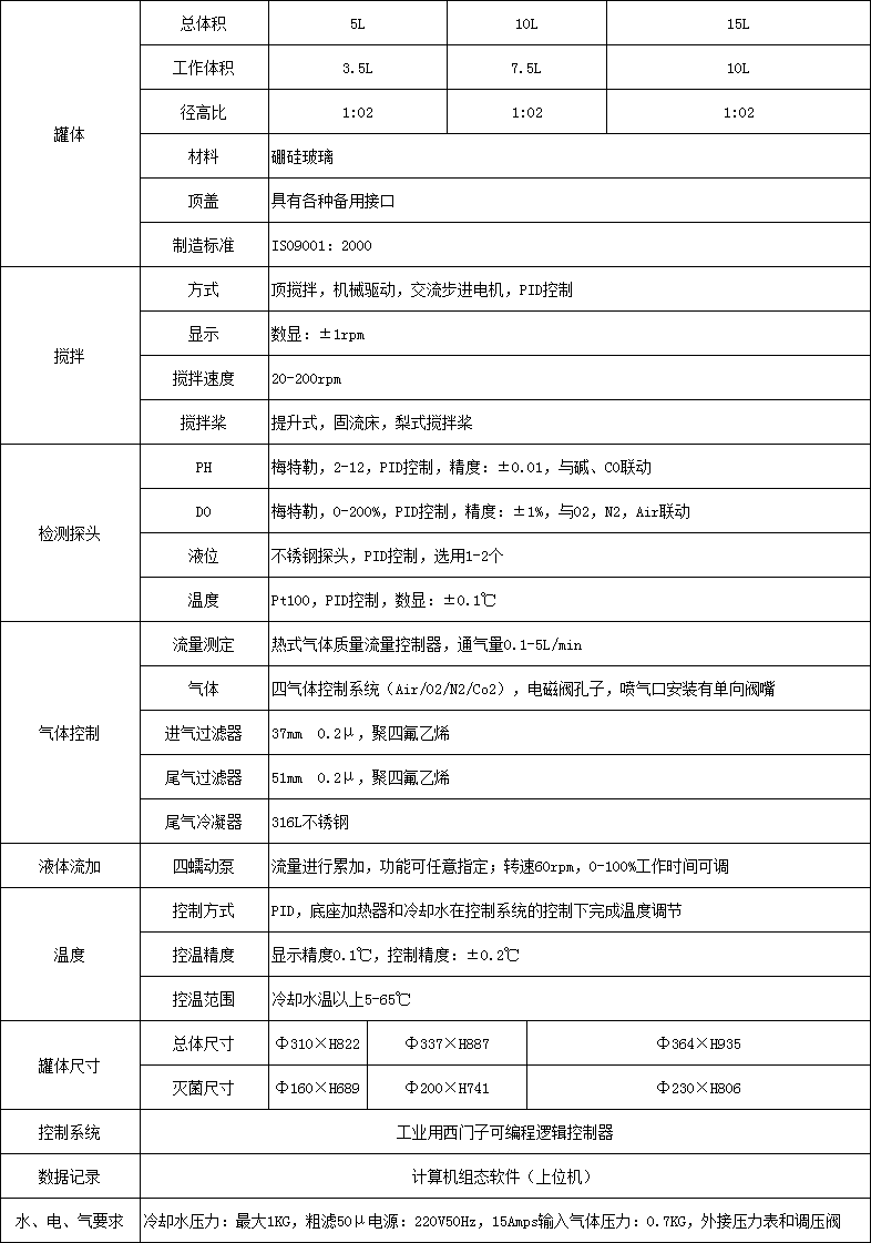 l 通气系统:四种供气策略可供选择,可根据工艺选择单气体(空气)、双气体(空气+氧气)、四气体(空气、氧气、二氧化碳和氮气)的供气方式,sparger可选大泡、微泡和无泡。
